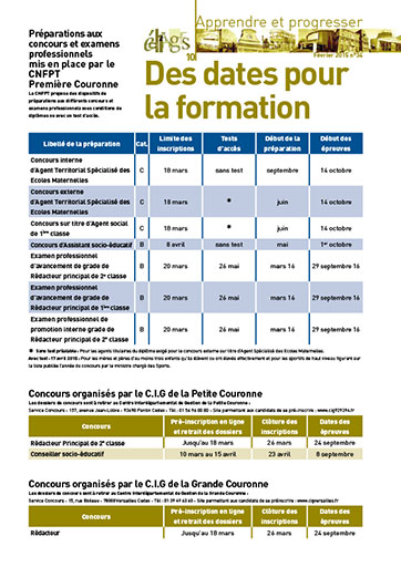 Calendrier des préparations proposées, des concours et examens professionnels.