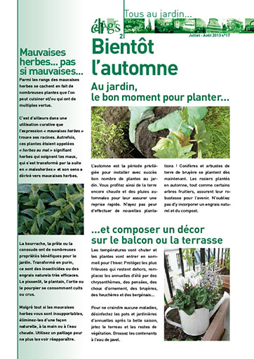 une rubrique jardinage (conseils) ou une rubrique évènement.